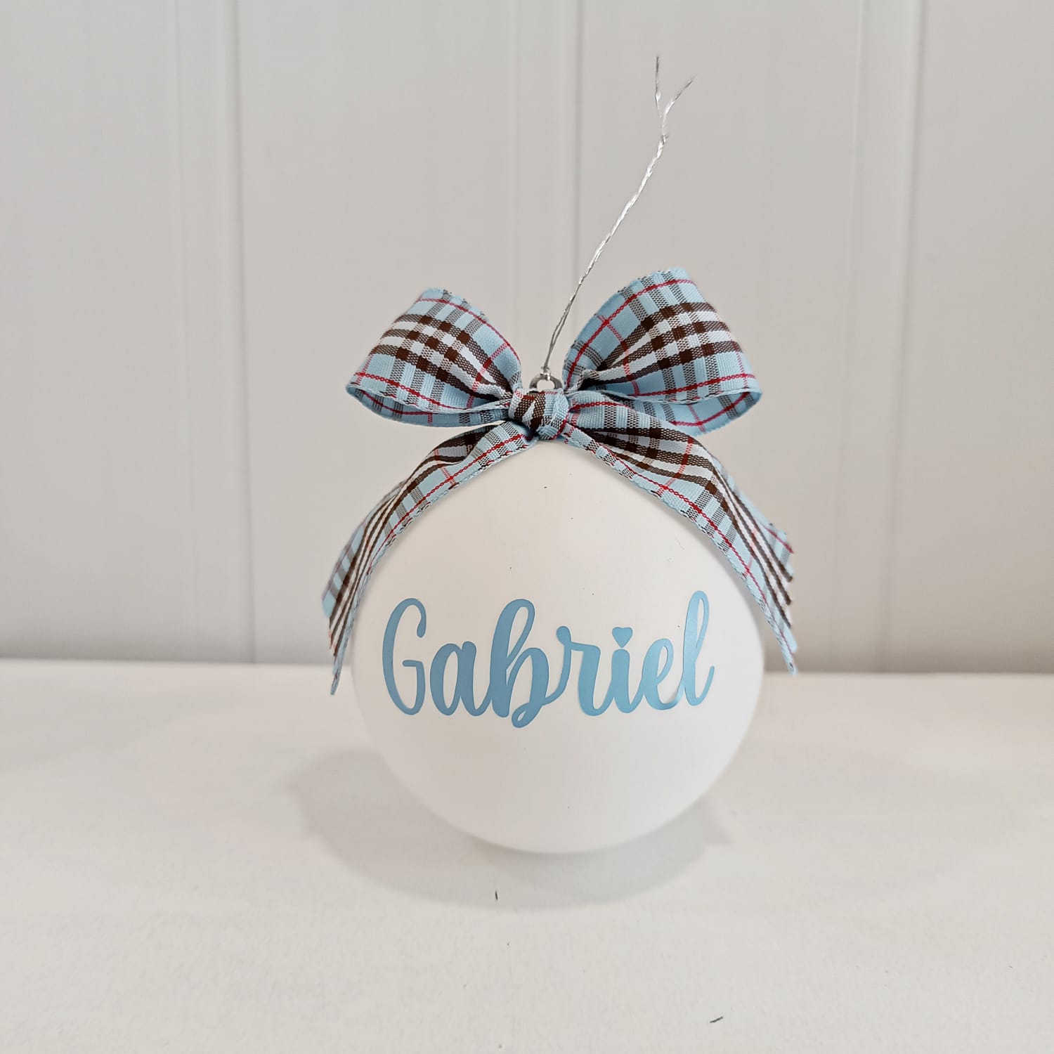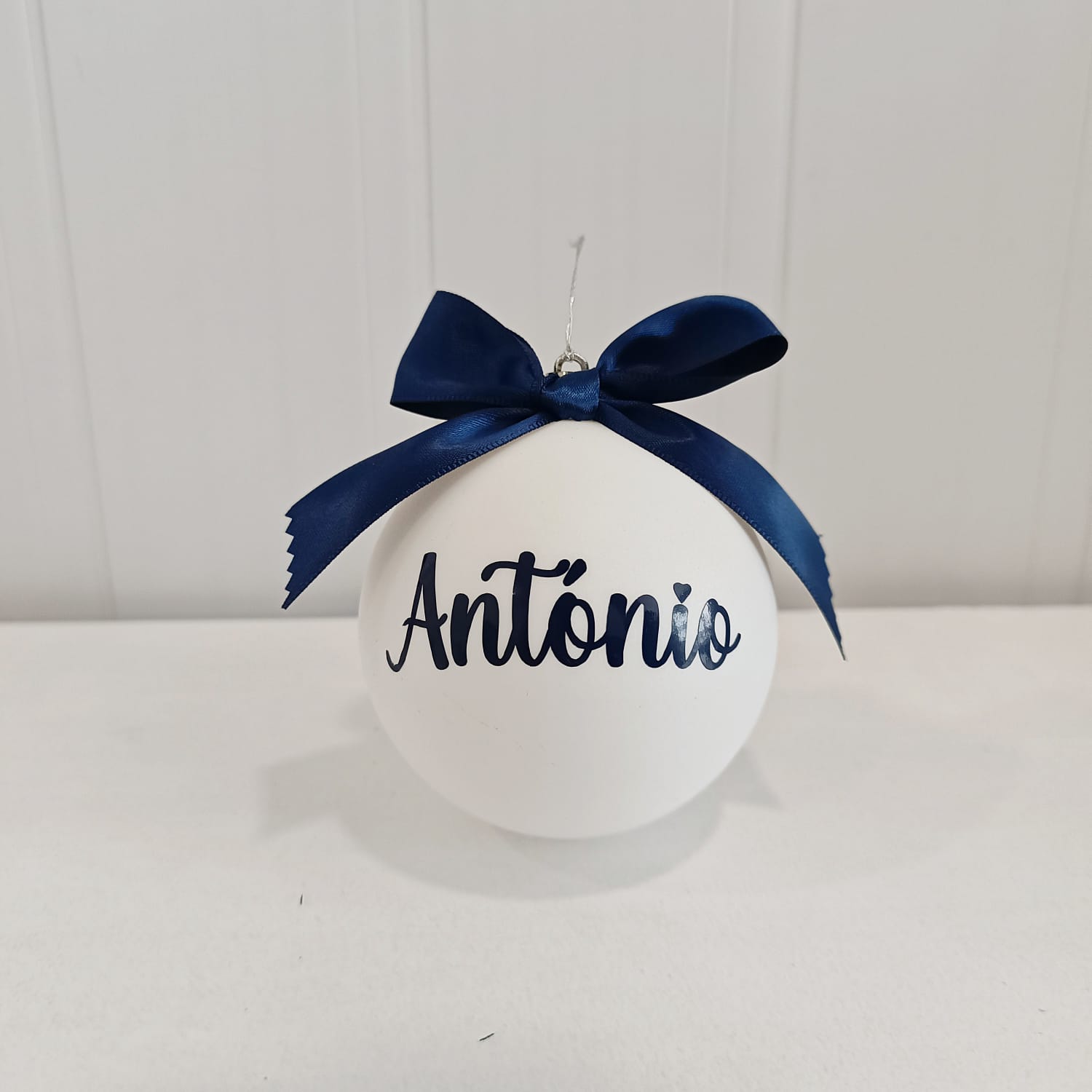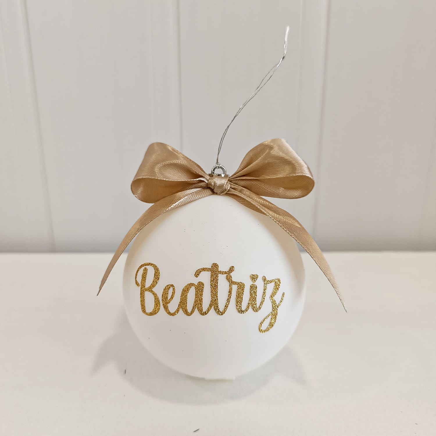 Bola de Natal brnaca personalizada. Ideal para um natal ainda mais especial, com os nomes da família na árvore e até dos pets!