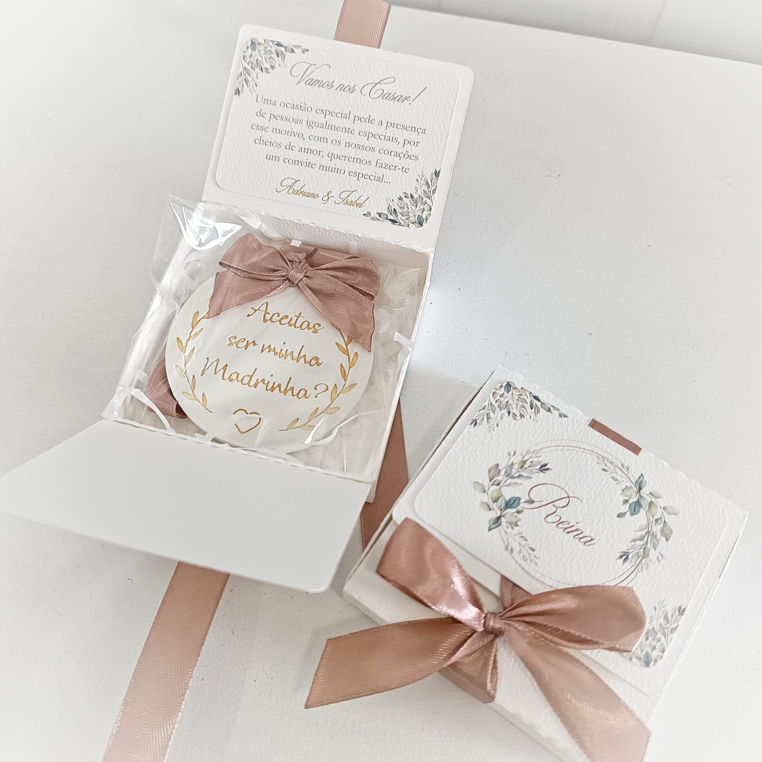 Perfeita para quem procura convites para padrinhos de casamento elegantes, artesanais e feitos com carinho, esta opção alia simplicidade, sofisticação e emoção.