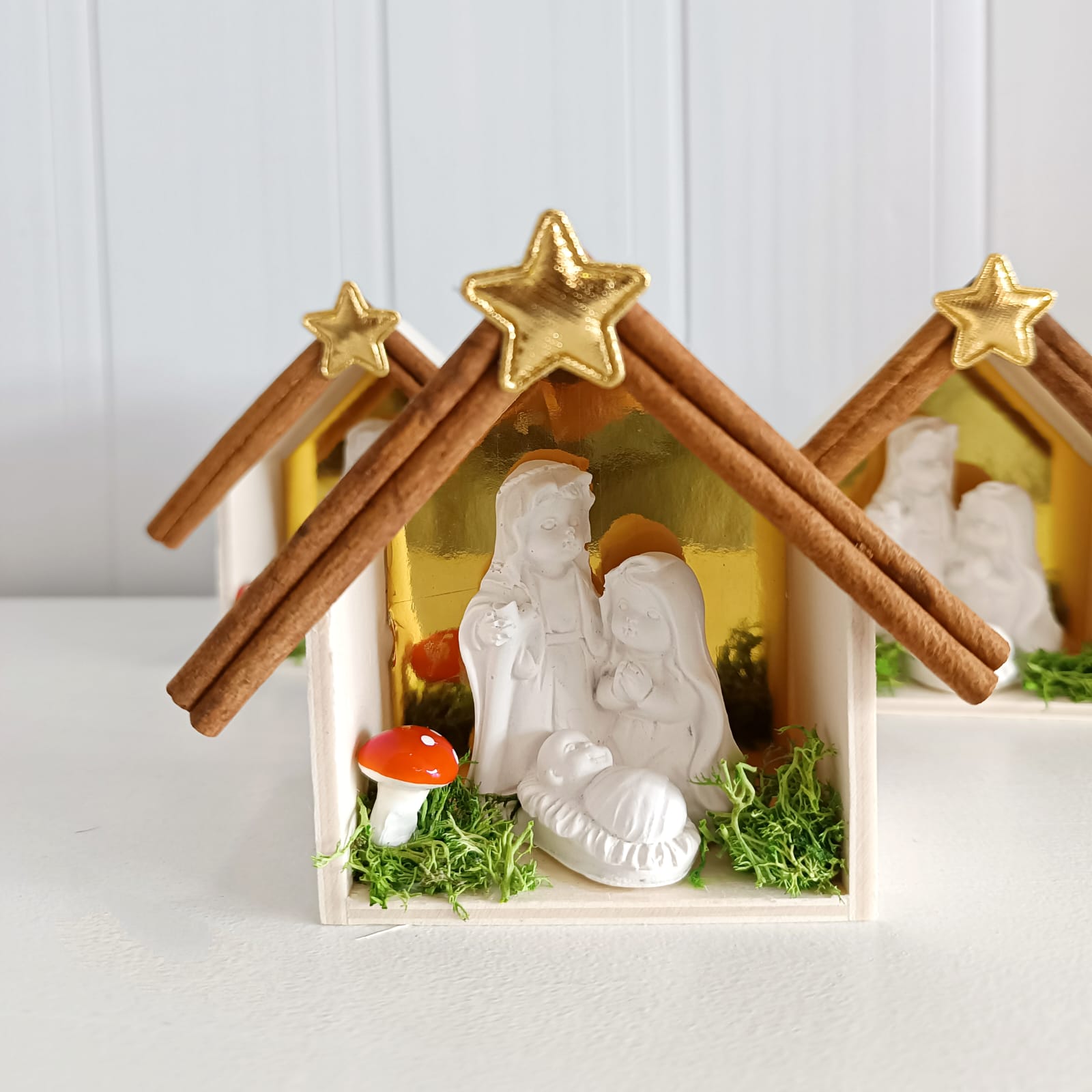Casinha de madeira com presépio, em pó cerâmico perfumado. Tradicional e amoroso!