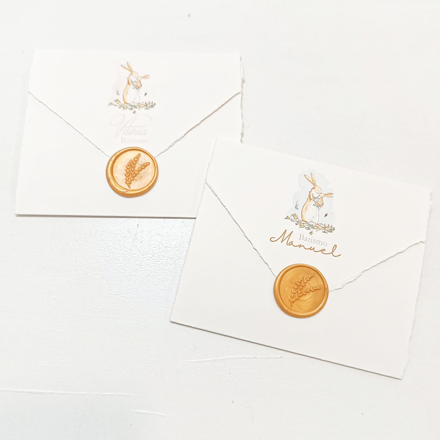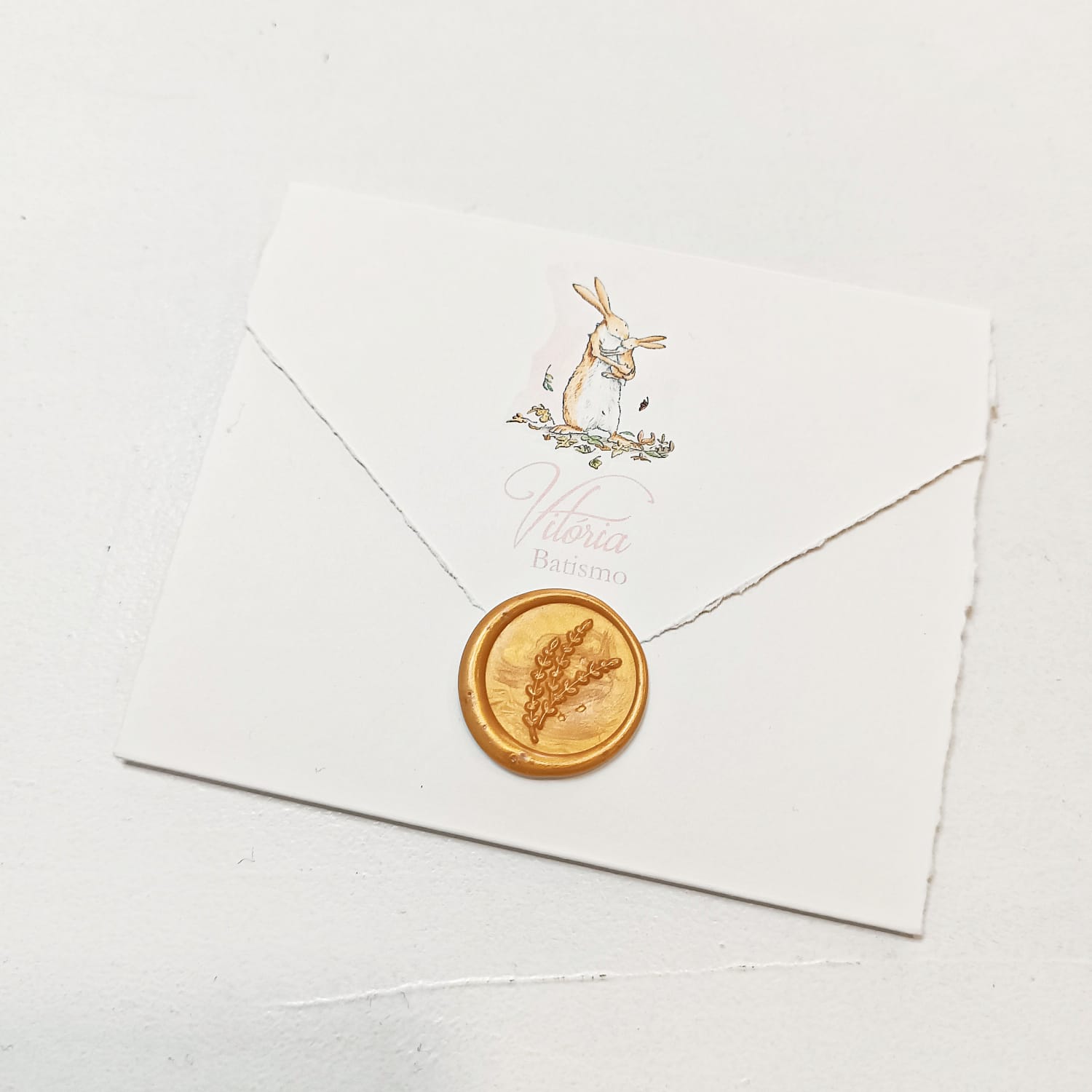 Produzido em papel de alta qualidade, inclui envelope artesanal com lacre de cera, tornando cada convite único. O interior é totalmente personalizável.