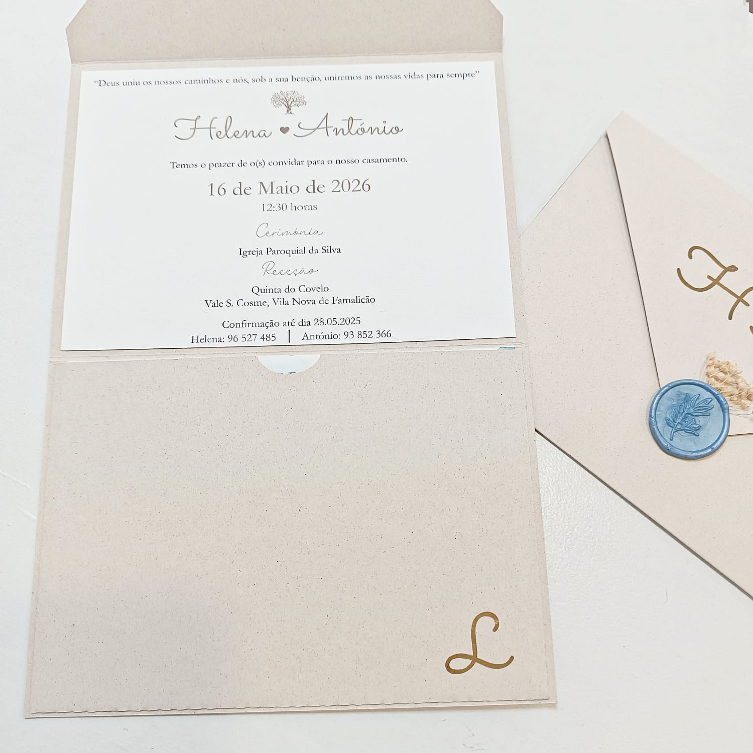 Convite feito por encomenda, prazo de produção 15 dias úteis. Caso não disponha deste prazo entre em contacto através do nosso email.