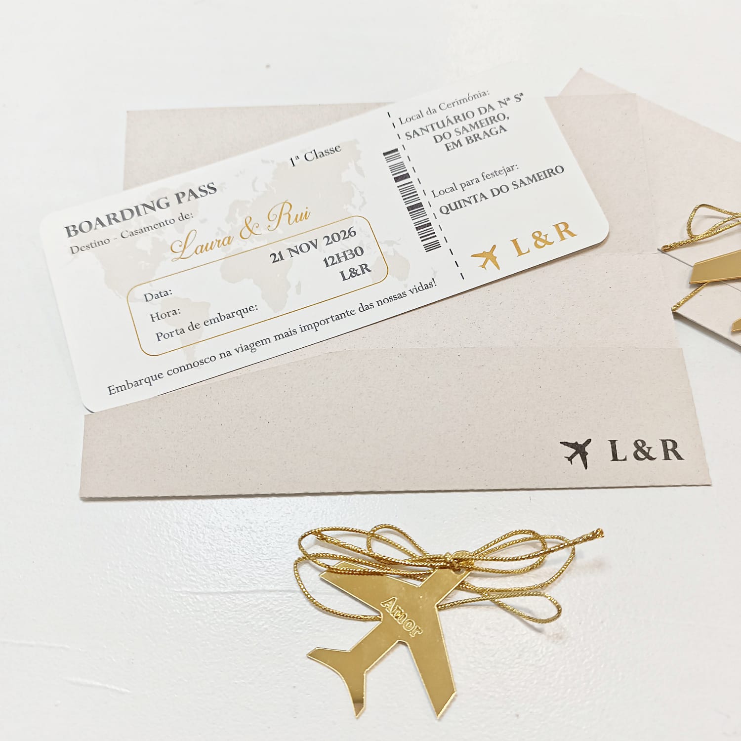 Transforme o convite do seu casamento numa verdadeira experiência com este modelo exclusivo em formato boarding pass é perfeito para casais que veem o amor como a viagem mais importante das suas vidas, e pretendem envolver todos os convidados no mesmo ambiente!