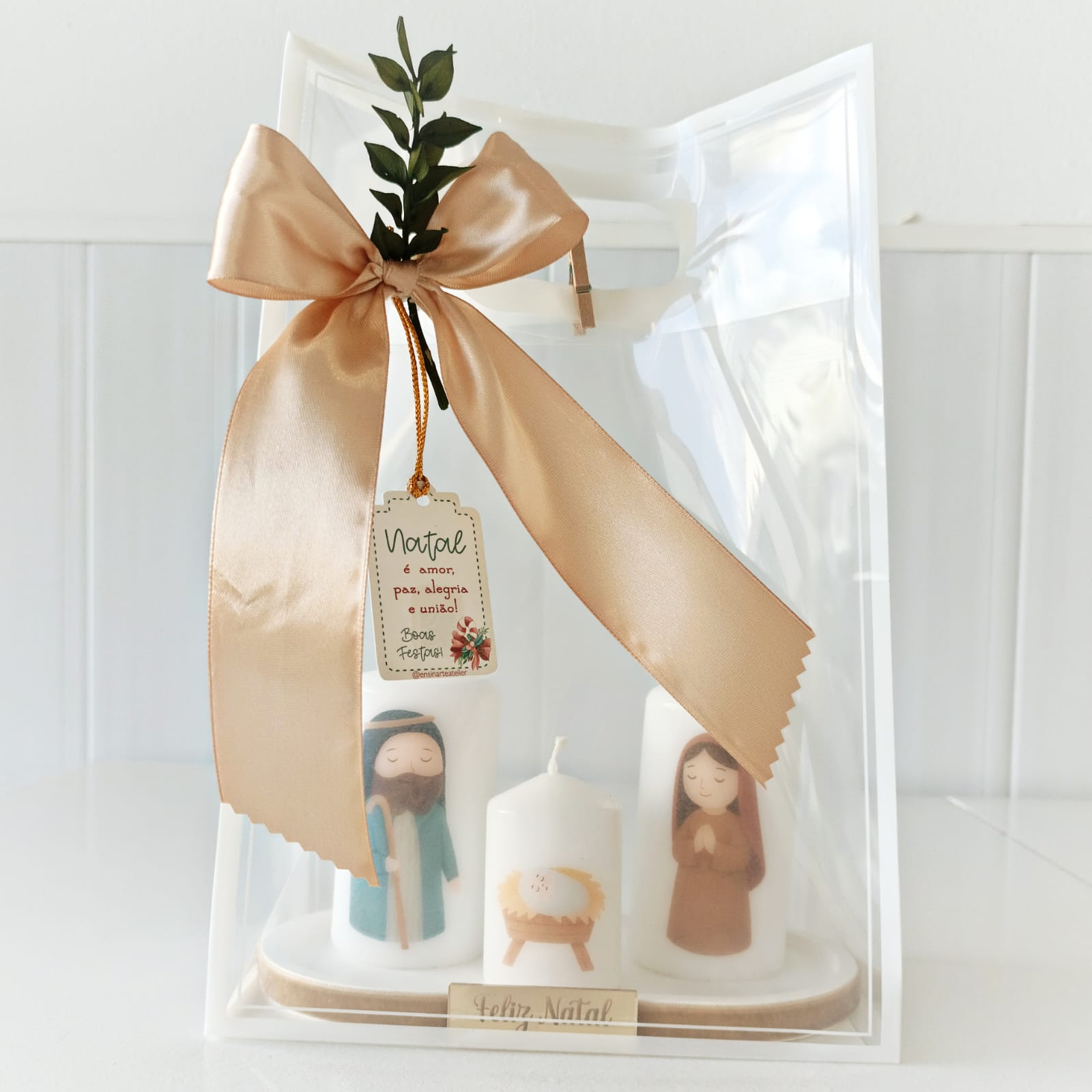 Um presépio pensado ao detalhe, cada vela um elemento numa base em pó cerâmico perfumado...
